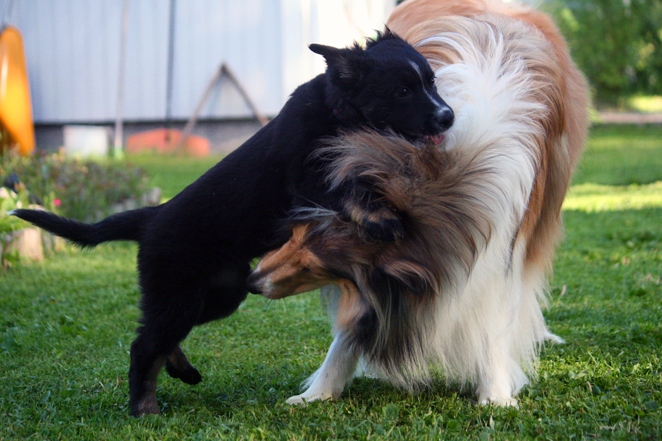 Muutama kuva Haikun ensimmäisiltä päiviltä uudessa kodissa noin 8-viikkoisena. Viimeisessä tutustutaan Miro-shetlanninlammaskoiraan ja Sina-collieen "isovanhempien" luona. ;)